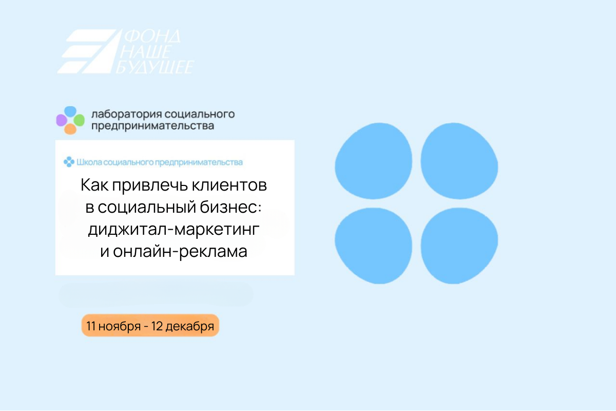 11 ноября Школа социального предпринимательства запускает новый онлайн-интенсив «Как привлечь клиентов в социальный бизнес: диджитал‑маркетинг и онлайн‑реклама». К участию приглашаются как начинающие предприниматели, так и те, кто имеет опыт и хочет систематизировать маркетинг и найти новые каналы привлечения клиентов. Обучение продлится до 12 декабря.